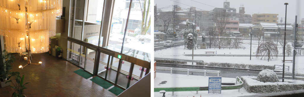 会場の外は雪(お昼近くまで雪が降っていました)